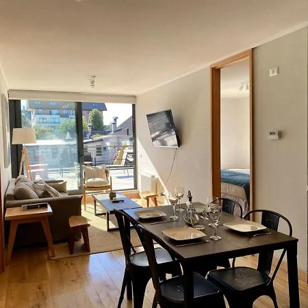 El Frente a la Costanera, amplia Terraza en Pto Varas Servicio HOM Puerto Varas se encuentra a un corto paseo de la Costanera de Puerto Varas y ofrece a sus huéspedes piscina cubierta. Está a 5 minutos a pie del centro de Puerto Varas y a tan solo 6 minutos a pie de la Casa Raddatz desde el apartamento de 45 m^2.